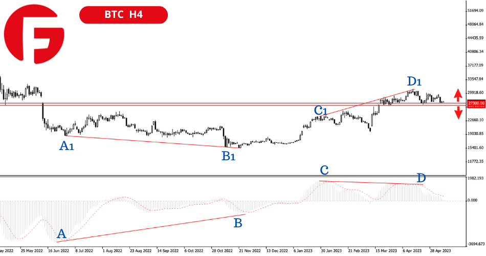 در عین حال، پویایی کلی معاملات و شاخص فنی MACD نشان دهنده ضعف آشکار خریداران است. توجه داشته باشید که نقطه B1 زیر نقطه A1 در نمودار قیمت BTC قرار دارد. در عین حال، نقطه B بالاتر از نقطه A در اندیکاتور MACD است. به این همگرایی می گویند که نشان دهنده ضعف فروشندگان یا آمادگی خریداران برای از سرگیری رشد است.
