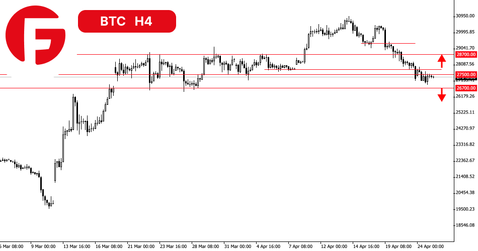 بیت کوین همچنان زیر محدوده مقاومتی 27500 تا 27800 دلاری معامله می شود. تا قبل از شکست و تثبیت بعدی قیمتها در بالای این محدوده مقاومتی، احتمال کاهش بیشتر همچنان بالاست. تایید تمایل فروشندگان برای ادامه کاهش ممکن است شکسته شدن سطح حمایتی 26700 دلاری باشد. تا آن زمان، بیت کوین در مرحله عدم اطمینان باقی می ماند.