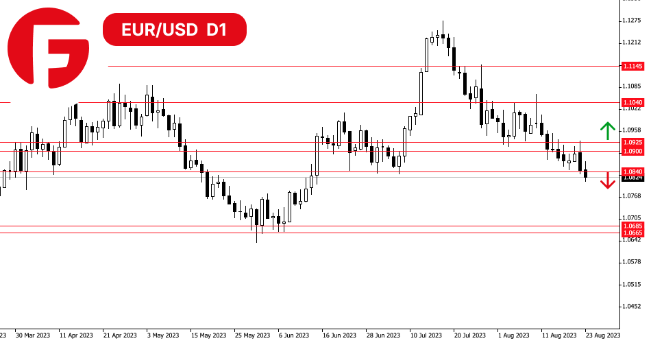 در زمان نوشتن این تحلیل، قیمت این جفت ارز از سطح حمایتی 1.0840 عبور کرد. به نمودار قیمت بالا توجه کنید - با نگاهی به تایم فریم روزانه، می شود دید که فروشندگان توانستند از سطح نسبتاً قوی عبور کنند. این سطح سه بار جلوی قیمتها را از افت قدرتمندتر گرفت. بنابراین، تثبیت کندل روزانه زیر سطح 1.0840 نشان دهنده آمادگی خرس ها برای ادامه افت تا محدوده باریک انباشت از1.0685 تا 1.0665 است.