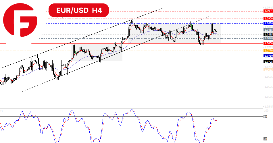هرچند برای تایید قدرت لازم خریداران برای ادامه رشد این سطح مقاومتی باید شکسته شود، اما هدف اصلی خریداران رسیدن به سطح مقاومتی و روانی 1.0900 است که برای رسیدن به این سطح، قیمتها باید از سطح مقاومتی 1.0880 به طور کامل عبور کنند.