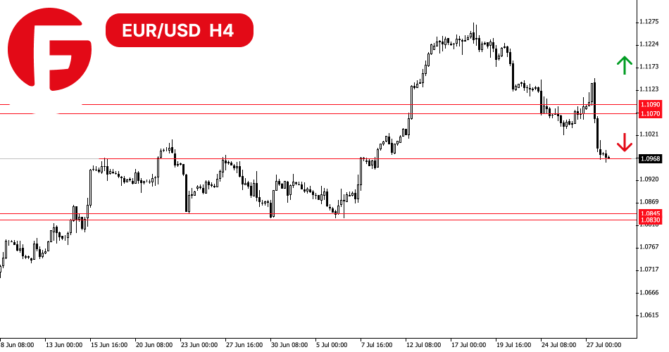 در نتیجهٔ داده های غیرمنتظره و قوی اقتصاد کلان از ایالات متحده، قیمت جفت ارز EUR/USD به سطح حمایتی 1.0970 سقوط کرد. به این نکته توجه کنید که فروشندگان با چه سهولتی بر ناحیه حمایتی 1.1070 - 1.1090 غلبه کردند حتی کف قیمتی قبلی را تکرار کردند.