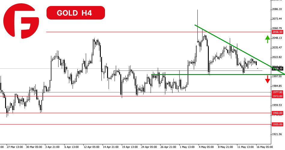 لطفاً توجه داشته باشید که ضلع پایینی مثلث با سطح حمایت روانی 2000 دلار منطبق است. از یک سو، این امر این حمایت را تقویت می کند، اما از سوی دیگر، شکست آن ضعف خریداران را تایید می کند و احتمال سقوط قیمت ها تا 1977 دلار و در ادامه به سطوح حمایتی 1950 و 1935 دلار را به طور قابل توجهی افزایش می دهد.