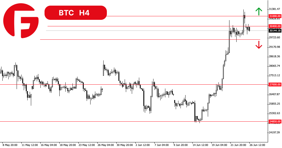 در مسیر خریداران، منطقه مقاومتی واقعا قوی 30400 تا 32000 دلار قرار دارد. البته پیش از این، این منطقه به عنوان یک منطقه حمایتی عمل می کرد و بنابراین، یک عامل صعودی بسیار قوی برای شکستن آن مورد نیاز است. در مورد عاملی صحبت می کنیم که می تواند رشد را تأیید کند و یا به خریداران کمک کند تا در دراز مدت به رشد خود ادامه دهند.