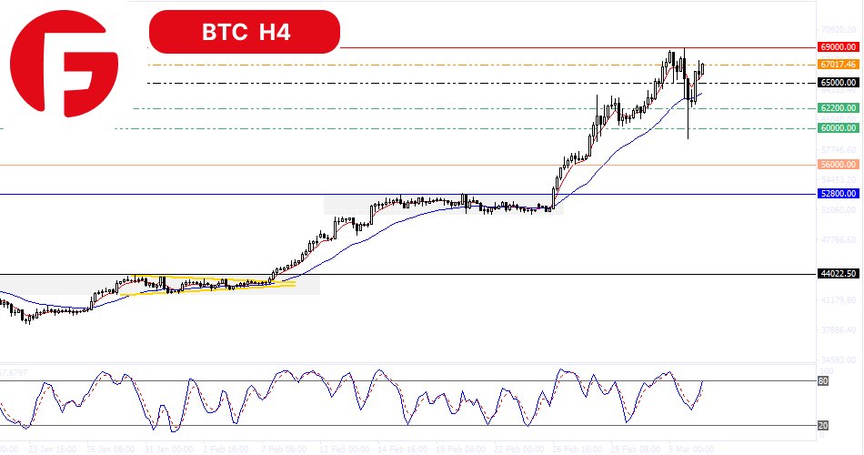 در حال حاضر قیمتها همچنان روند صعودی دارند و خریداران در تلاشند تا از سطح مقاومتی 67000 دلار عبور کنند. در صورت موفقیت، هدف بعدی آنها رسیدن به سطح مقاومتی 69000 دلار و در ادامه ثبت سقفهای تاریخی جدید است.