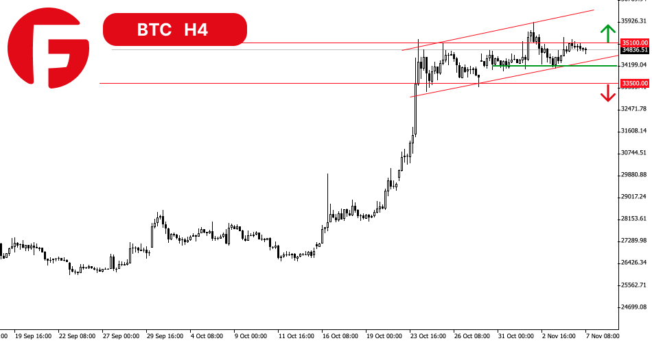 از نقطه نظر فنی، بیت کوین در کانال نسبتاً باریکی به سمت بالا به معاملات خود ادامه می دهد. در این حالت، می توان در مورد تشکیل یک کانال جانبی، اما پهن تر از کانال فعلی صحبت کرد. نمودار قیمت بالا به وضوح نشان می دهد که کانال جانبی به سمت بالا هدایت می شود، اما زاویه شیب زیاد نیست که این نشان دهنده ضعف آشکار خریداران است. بنابراین، بازگشت به زیر سطح حمایتی 33500 دلار می تواند موجی از فروش را به راه بیندازد. تا آن زمان، احتمال رشد بیشتر BTC وجود دارد.