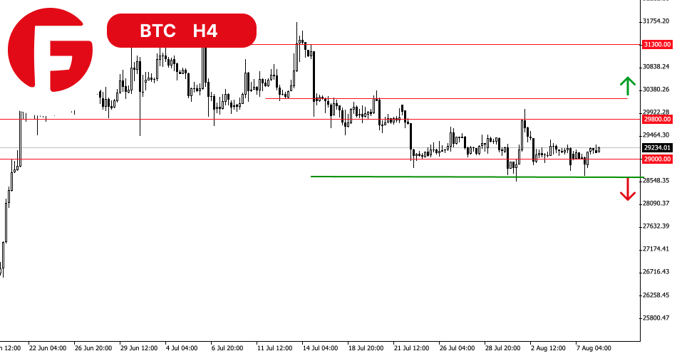 قیمت بیت کوین همچنان نزدیک به 29000 دلار است که این نشان می دهد هیچ تغییر قابل توجهی رخ نداده است. در عین حال، خریدها ممکن است تنها پس از بازگشت به بالای سطح روانی 30000 دلار منطقی باشند و راه را برای رسیدن به 31300 دلار و در ادامه به هدف موضعی 32000 دلار باز کند.