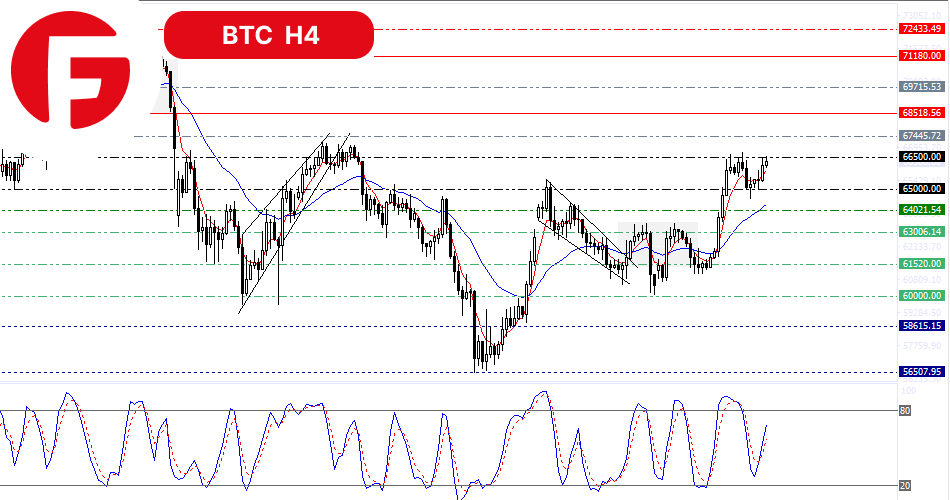 در صورت شکست و تثبیت قیمتها در بالای سطح مقاومتی 66500 دلار، هدف بعدی خریداران 67445 - 68518 دلار خواهد بود.