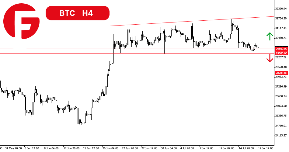 ریسک یک سناریوی نزولی هر روز در حال افزایش است و تا بازگشت و تثبیت قیمتها در بالاتر از نزدیکترین سطح مقاومتی یعنی 30300 دلار، افزایش خواهد یافت.