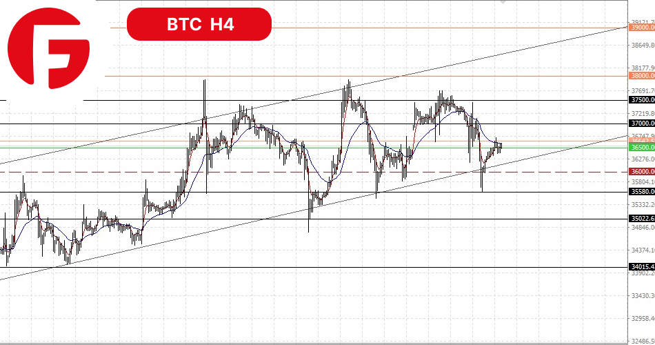 قیمتها بعد از سقوط به 35580 دلار مجدداً به بالای سطح مقاومتی 36500 دلار بازگشتند. خریداران برای ادامه روند صعودی باید از سطح 37000 دلار عبور کنند که در این صورت احتمال ادامه رشد تا 37500 - 38000 دلار وجود دارد.