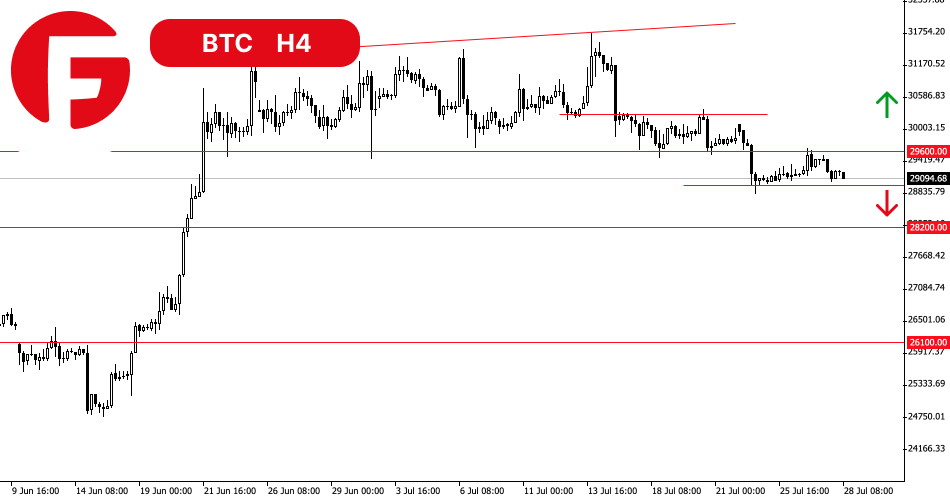 تا زمانی که قیمت بیت کوین به بالای 29600 دلار بازنگردد، ریسک کاهش بیشتر به 28200 دلار وجود دارد. در عین حال، شکست و حتی تثبیت در بالای سطح مقاومتی 29600 دلار سیگنال خرید با کیفیتی نیست. چون ما در این صورت تایید تضعیف خریداران و نه برتری واضح گاوها را دریافت خواهیم کرد.