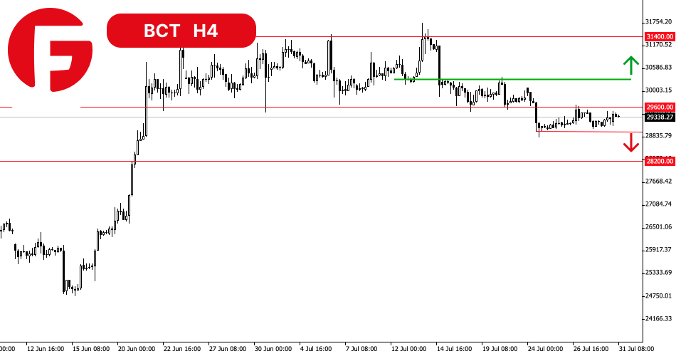 اولین سیگنالی که قدرت خریداران را نشان می دهد، شکست و تثبیت قیمت ها در بالای 30300 دلار خواهد بود. تا آن زمان، یک سناریوی نزولی محتمل تر باقی خواهد ماند.