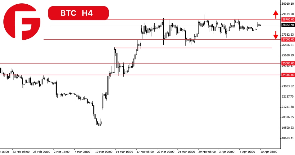 ارز دیجیتال اصلی BTC به بالای 28000 دلار بازگشته است، اما از نقطه نظر فنی، چیزی تغییر نمی کند. به هر حال، رشد بیشتر مستلزم شکست سطح مقاومت فنی 28700 دلار است. تا آن موقع، ثابت ماندن بیت کوین در کانال جانبی همچنان نشان دهنده عدم اطمینان بازار است.