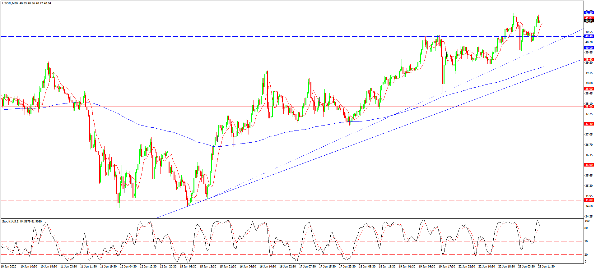 افت اصلاحی و موقت نفت تا مرز نزدیک ترین خط ترند ادامه یافت. شکست مینیموم 40.50 به افت موقت دامن زد و باعث شد قیمت طلای سیاه تا مرز سطح هیجانی 40.00 و حتی پشتیبانی هدفی 39.60 نیز کاهش یابد. به هر حال خط روند صعودی مانع افت بیشتر شد. چرا که حتی افزایش غیر منتظره حجم ذخایر نفتی هم، فعلا فشاری بر بازار وارد نخواهند آورد. فعالیت تجاری از سر گرفته شده و حرف شنوی کامل روسیه و عربستان از ایالات متحده، به ادامه یابی روند صعودی قیمت نفت کمک خواهد نمود. در حال حاضر در آستانه شکست مقاومت 41.20 هستیم، که در صورت وقوع می تواند نرخ گذاری ها را تا مرز 41.60 و حتی 42.00 دلار نیز افزایش دهد.
