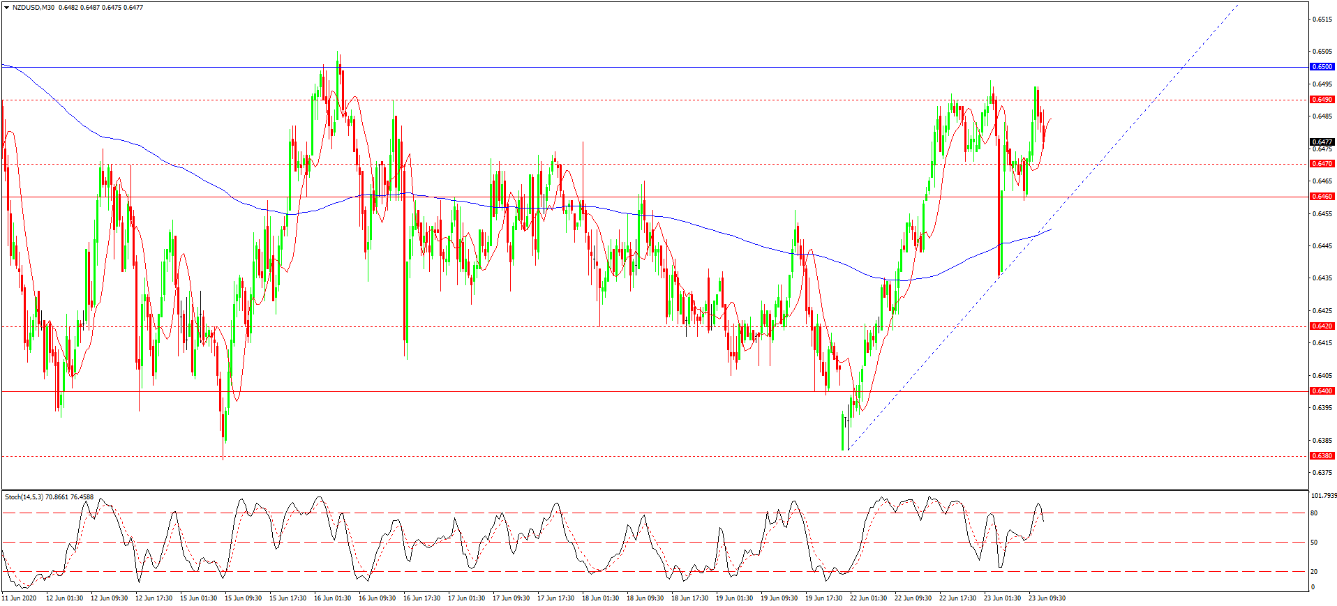 اخیرا به دلیل ترس ایجاد شده در مورد شرایط جنگ تجاری و احتمال عدم عهد قرارداد ایالات متحده با چین، دلار استرالیا هم ریزش شدیدی پیدا کرد. اما نرخ گذاری ها به ماکسیموم موضعی 0.6494 برخورد کرده اند و تا قبل از تحکیم یابی بر فراز 0.6500 به طور کلی دلار نسبت به فرانک تضعیف خواهد شد. پتانسیل این افت اصلاحی تا خط ترند صعودی است. یعنی این افت می تواند تا سطوح 0.6470 و یا 0.6460 نیز ادامه یابد. احتمال اینکه قیمت در آینده از این بازه مینیموم موضعی انعکاس یابد افزون به نظر می رسد.