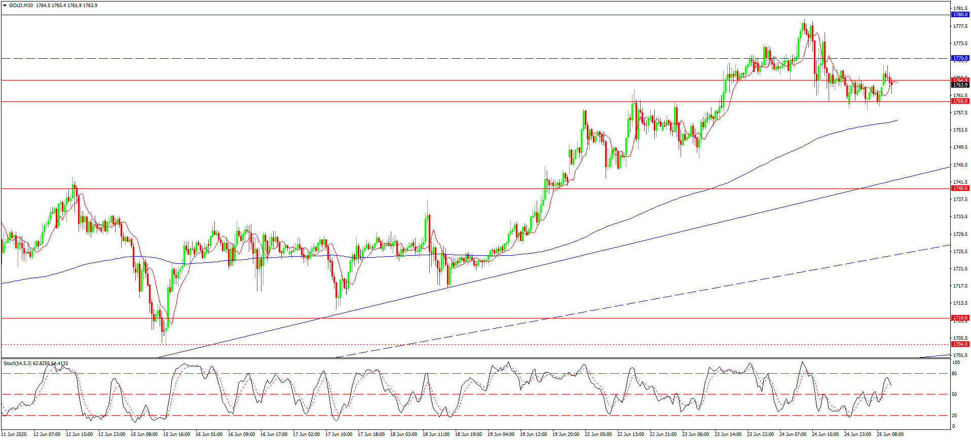 سقوط سهام افزایش قیمت دارایی های حفاضتی را به دنبال داشت. افزایش اخیر طلا بعد از شکست ماکسیموم موضعی 1770.0 و رشد قیمت تا سطح هدفی 1780.0 نیز ادامه یافت. افت اصلاحی را که الان ملاحضه می کنیم بعد از برخورد با پشتیبانی 1760.0 اتمام یافته و در حال حاضر نیاز به عامل تحریک کننده و منفی برای اقتصاد جهانی داریم، تا افزایش قیمت طلا ادامه یابد. در غیر این صورت دوباره با شکست 1760.0 برخورد می کنیم و این شکست قیمت را تا مرز 1750.0 نیز سوق خواهد داد. برای شکل گیری چنین سناریویی نیاز به بهبود یابی شرایط جنگ تجاری، نشر خبر مثبت در مورد اتمام قرنطینه و یا کشف واکسن و همچنین افزایش دوباره سهام می باشد.