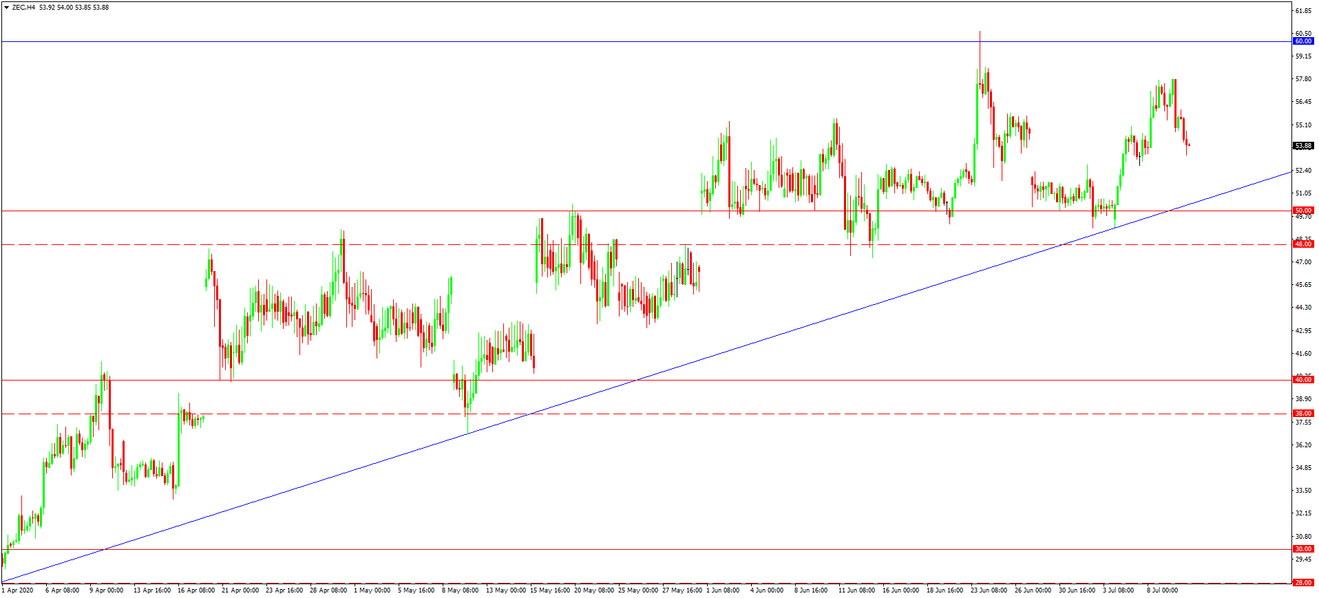 زی کش بر فراز کانال صعودی در حال افزایش یابی است. ولی اخیرا با افت اصلاحی رو به رو شدیم. این افت تنها در صو.رت شکست مینیموم 52.00 می تواند تا مرز خط روند و سطوح 51.80 یا حتی 50.00 هم ادامه پیدا کند. شکست خط روند مسلما با تست شدن مینیموم موضعی 48.00 همراه می گردد. در غیر این صورت بعد از برخورد قیمت با خط روند نرخ گذاری ها به روند صعودی باز خواهند گشت. در ضمن احتمال افزایش کوتاه مدت بعد از برخورد با 52.00 وجود داره.