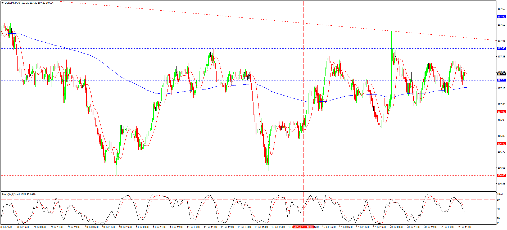 از دفعه قبل که در مورد این جفت ارزی نوشته بودیم، قیمت با مینیموم موضعی 106.60 برخورد کرده بود و داشت استحکام پیدا می کرد. مسلما افزایش ادامه پیدا کرد. قیمت به ترتیب سطوح 107.20 را شکاند و حتی به سطح هدفی بعدی 107.40 هم نزدیک شد. دیرتر قیمت دچار فشردگی نوسانی شد. فشردگی هنوز ادامه داشته و می تواند به ادامه یابی افت قیمت بی انجامد. این افت بعد از شکست مینیموم 107.20 امکان پذیر است. در ضمن در نظر داشته باشید که برخورد دوباره به ماکسیموم 107.40-107.48 هم امکان پذیر می باشد، ولی احتمال افت شدید تر قیمت بعد از بروز چنین افزایشی، بیشتر خواهد بود.