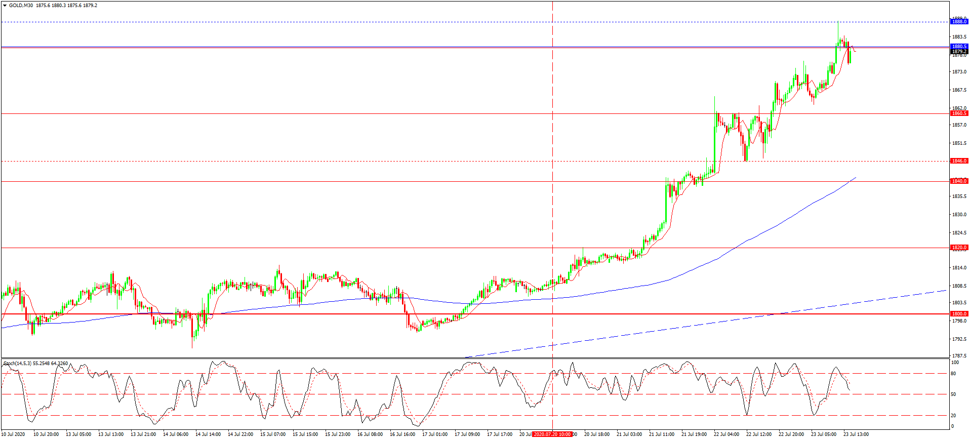 از دفعه قبل که در مورد طلا نوشته بودیم، قیمت داشت به مقاومت موضعی 1820.0 نزدیک می شد. این افزایش به شکست این سطح انجامید. قیمت مسلما افزایش بیشتر یافت و به ترتیب سطوح هدفی 1860.0 و 1880.0 را شکاند. انعکاس بعدی از 1888.0 که در واقع همان انعکاس از سطح هیجانی 1900.0 به حساب می آید، در صورت افت بیشتر می تواند حتی تا مرز 1860.0 و 1846.0 هم ادامه یابد. مخصوصا با در نظر گیری احتمال سیاست گذاری تهاجمی ایالات متحده به منظور اختصاص بودجه دوباره و خریداری اولین پکیج واکسن برای مردم آمریکا.