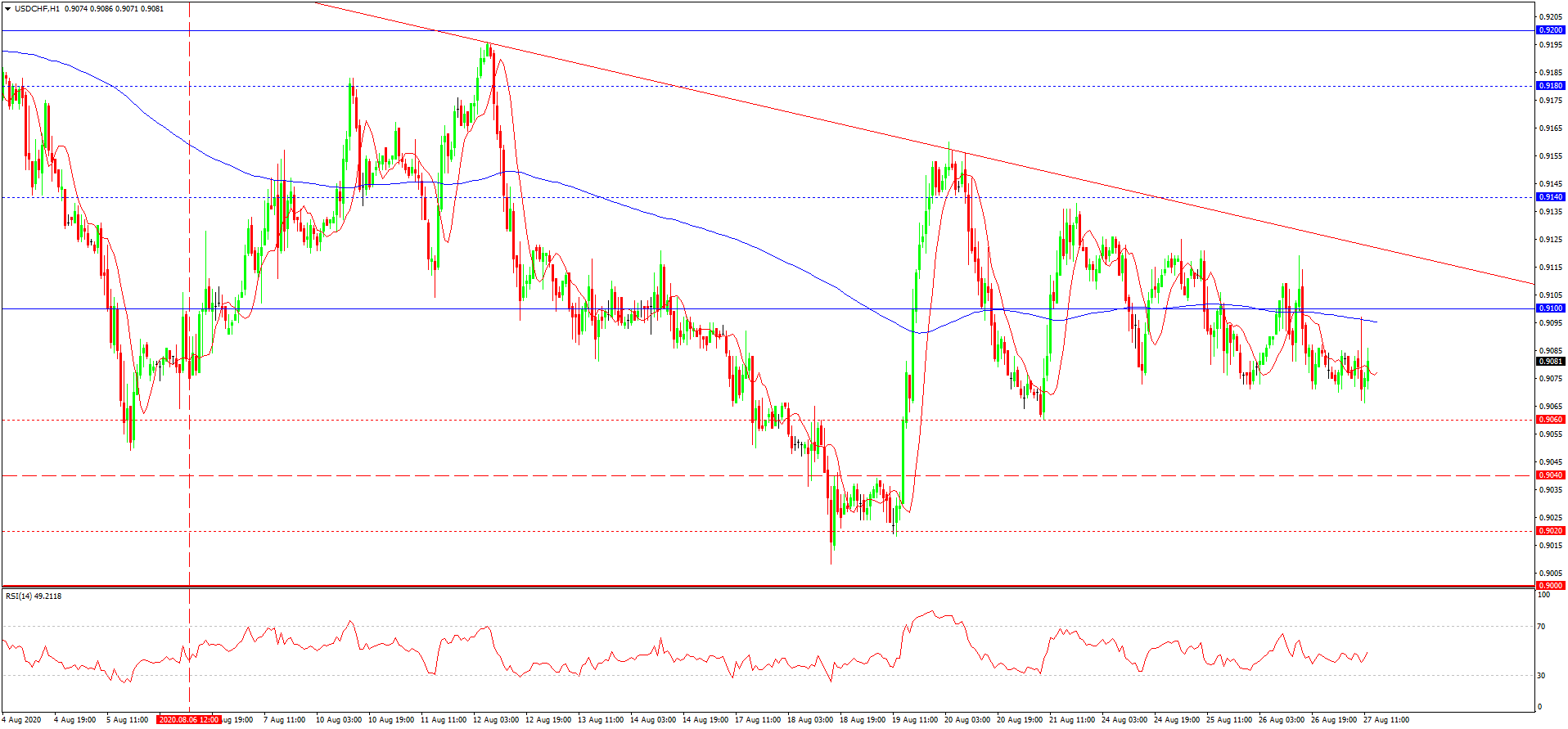 از دفعه قبل که در رابطه با این جفت ارزی نوشته بودیم، قیمت طلا سطح هیجانی 2 هزار دلار را شکانده بود. همین مساله باعث شد که نرخ دارایی ها و ارز های حفاظتی تا حدودی به افزایش مابعد ادامه دهند. ولی به هر حال شکسته شدم سطوح تاریخی یا رکوردی همیشه انعکاس روند و یا حداقل متوقف شدن موقت ترند جاری را به همراه دارد. بدین شکل افزایش قیمت فرانک ین بعد از برخورد با مینیموم موضعی 0.9060 اتمام یافت. بعدها قیمت دوباره تا این سطح پایین آمد و حتی تا مرز سطح هیجانی 0.9000 هم افت کرد. ولی باز هم با فشردگی قیمت به خط روند نزولی رو به رو شدیم. به هر حال تا قبل از شکست بازه 0.9100-0.9140 روند کلی نزولی خواهد بود. افزایش بر فراز 0.9180 مبنی بر از سر گیری افزایش قیمت دلار در تمام طیف بازار است.