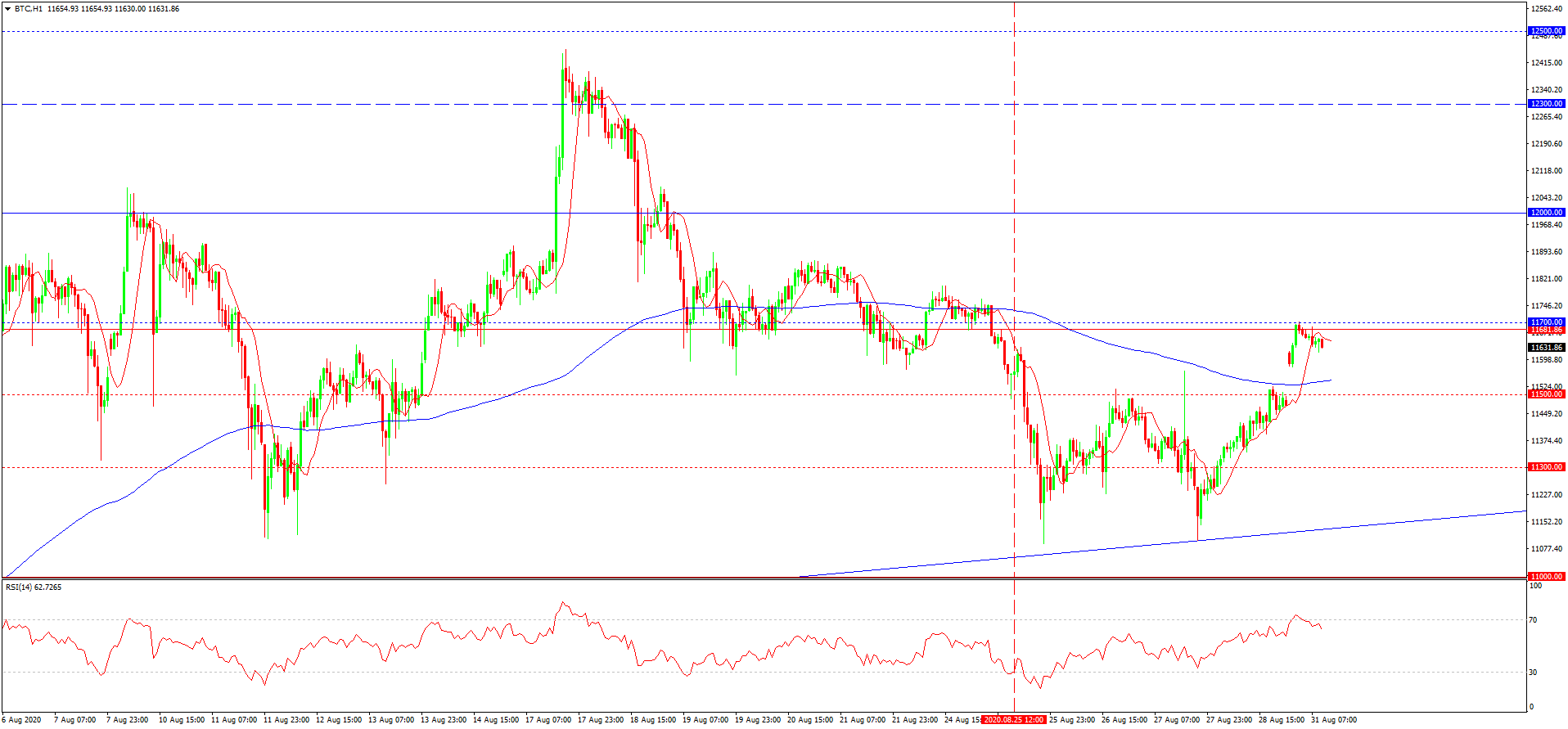 از دفعه قبل که در مورد بیتکوین نوشته بودیم، قیمت به مینیموم موضعی 11500 نزدیک شده بود و با احتمال شکسته شدن این سطح و ادامه یابی افت نرخی رو به رو بودیم. سطح هدفی شکسته شد و پتانسیل نزولی شکست سطح هدفی 11300 را به دنبال داشت و قیمت را تا مینیموم 11110 نیز سوق داد. مسلما برخورد با نهاد بازار گرایش نرخی را منعکس کرد و تحکیم یابی دوباره قیمت بر فراز سطح 11500 و افزایش تا سطح 11700، منبی بر از سر گیری افزایش میان مدت می باشد. تا قبل از شکست پشتیبانی 11500 می توان با افزایش بیشتر قیمت بیتکوین رو به رو بود. شکست سطح هدفی یاد شده گرایش صعودی را به صورت موقف متوقف می نماید و در چنین صورتی به منظور بازگشایی معاملات خرید باید منتظر انعکاس قیمت از پشتیبانی 11300 بود.