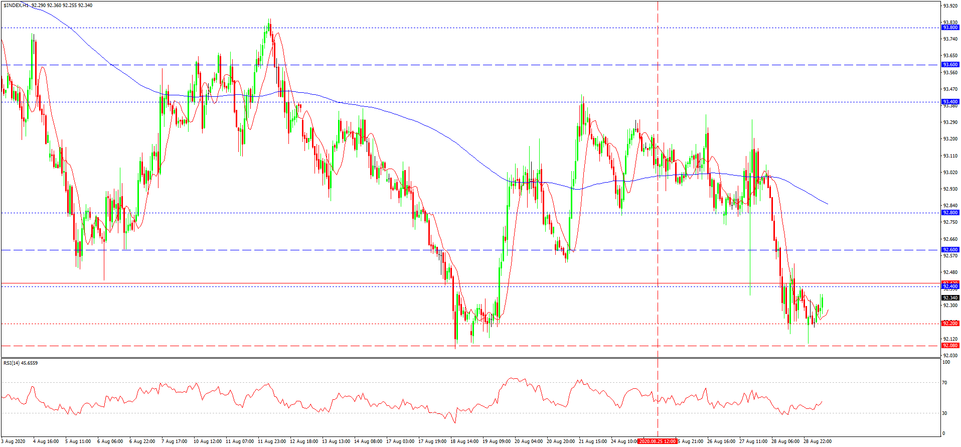 از دفعه قبل که در مورد این جفت ارزی نوشته بودیم، شاخص دلار از ماکسیموم 93.40 سقوط می کرد. طبق قانون حرکت در کانال افقی، انعکاس از سقف بازار به ادامه یابی افت قیمت تا نهاد بازار شد. قیمت تا مینیموم 2 ساله افت پیدا کرد. در حال حاضر نیز با فشردگی نوسانات بر فراز مینیموم 92.08 رو به رو هستیم. این فاکتور تکنیکی در کوتاه مدت امکان افزایش اصلاحی را تنها در صورت شکست مقاومت 92.40-92.60 افزایش می دهد. چنین افزایشی شاید تا مرز 92.80 یا 93.20 هم ادامه یابد. در نظر داشته باشد، که انعکاس قیمت بعد از تست کردن بازه نرخی 92.40-92.60 می تواند با افت مابعد و حتی شکست مینیموم دو ساله نیز همراه گردد.