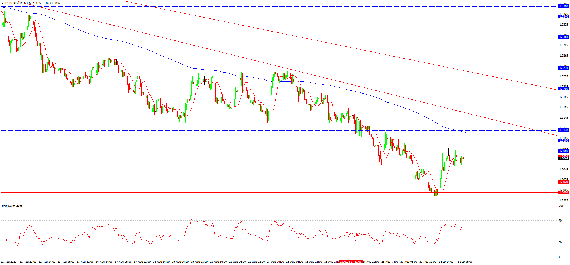 از دفعه قبل که در رابطه با این جفت ارزی نوشته بودیم، قیمت از خط روند نزولی انعکاس یافته بود و داشت به مینیموم موضعی 1.3120-1.3140 نزدیک می شد. بعد از برخورد چهارم مسلما با شکست این مینیموم رو به رو شدیم و قیمت تا مرز 1.3040 و حتی 1.3000 سقوط نمود. برخورد نرخ این جفت ارزی با سطح هیجانی 1.3000 هم زمان با برخورد دلار ایالات متحده با نهاد بازار و پشتیبانی چند ساله رخ داد، که مسلما باعث اتمام گرایش نزولی شد. افزایش قیمت دلار ایالات متحده، مخصوصا به موازات فشردگی نوسانات نرخی قیمت نفت باعث توقف یابی موقت تحرکات نرخی در این جفت ارزی، پس از افزایش اخیر شده. قیمت در حال فشرده شدن به مقاومت 1.3080 هست و در صورت شکست آن می تواند تا مرز 1.3120 هم افزایش یابد.