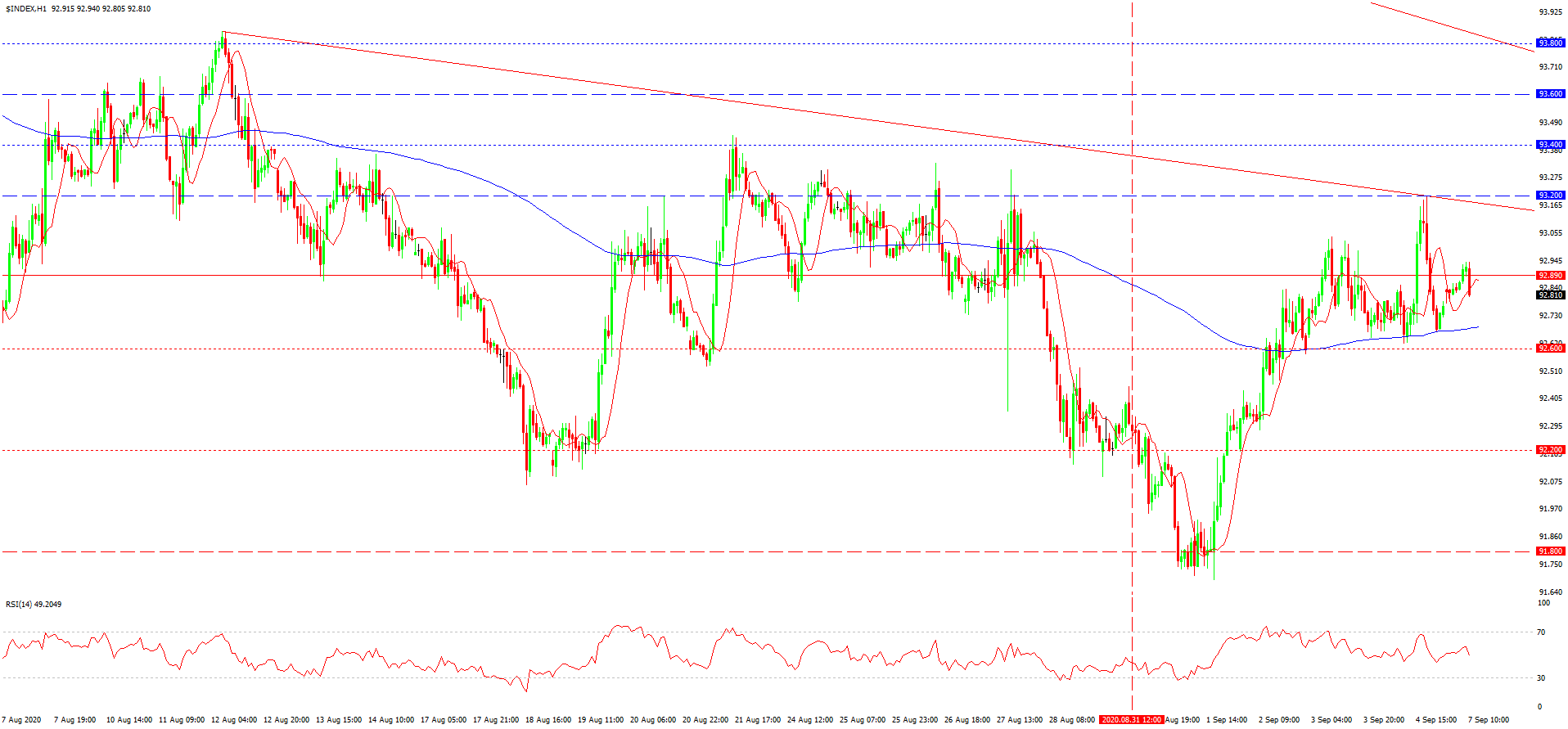 از دفعه قبل که در مورد شاخص دلار نوشته بودیم، نرخ گذاری مینیموم 92.20 را شکاند و تا مرز سطح هدفی 91.80 افت نمود. انعکاس بعدی مسلما به دلیل تست شدن بازه ابهام پشتیبانی 92.00 رخ داد. افزایش که در حال حاضر مشاهده می نماییم در میان مدت می تواند ادامه داشته باشد. البته تنها بعد از شکست خط روند نزولی و بازه مقاومت 93.20-93.80. مسلما تا قبل از تحکیم یابی شاخص دلار بر فراز سطح هدفی 94.00 می توان با ادامه یابی فشردگی نوسانی این شاخص در نهاد بازار رو به رو بود. فشردگی فعلی قیمت در بازه 92.60-93.20 می تواند بعد از بروز افزایشی ضربانی تا مرز 93.40-93.60 اتمام یافته و به افتی میان مدت تبدیل شود، که بعدا قیمت را تا مینیموم 92.20 و 91.80 هم پایین آورد. تعطیلات امروز ایالات متحده، به غیر از پایین آوردن نرخ نوسانات، می توانند افت قیمت دلار را نیز در طی جلسات معاملاتی امروز آمریکا، امکان پذیر نماید.