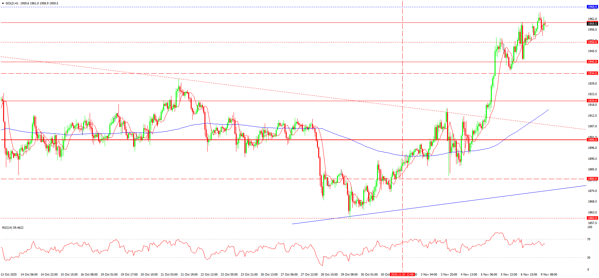 از دفعه گذشته قیمت طلا رسیده به نهاد بازار از پشتیبانی 1860 انعکاس پیدا کرده بود. در ادامه همراه با تحت سوال رفتن سرعت پروسه کشف واکسن قیمت طلا به افزایش خود ادامه داد و با رد کردن سطح هیجانی 1900 دلار، تا ماکسیموم 1934 رشد نمود ودر حال حاضر هم به سمت سطح هدفی 1980 راهی می باشد. تا زمان رسیدن قیمت به این سطح شاید با ابراز خوش بینی های جو بایدن در رابطه با کشف واکسن رو به رو شویم، که تنها عامل از سر گیری روند نزولی خواهد بود.