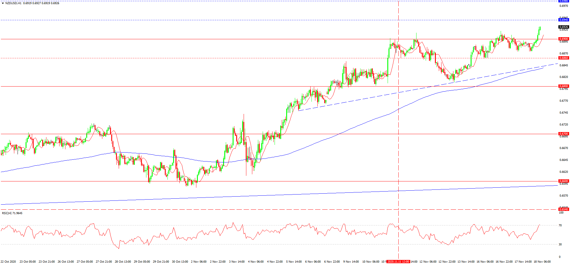 از دفعه گذشته که در مورد دلار نیوزیلند نوشته بودیم، به تاریخ 11 نوامبر، نرخ گذاری ها با سطح 0.6900 برخورد کرده بودند و افت اصلاحی شروع شده بود. کاهش موقت قیمت تا پشتیبانی 0.6860 و مینیموم بعدی – 0.6800 نیز سقوط کرد. این مینیموم هدفی بود و برخورد قیمت با آن به افت اصلاحی اتمام داد، روند به فاز اصلای برگشت. اخیرا ماکسیموم موضعی شکسته شده و نرخ گذاری ها در حال افزایش هستند. عدم ازسر گیری افزایش قیمت دلار، به دلیل افزایش خوشبینی بازار به محرک مالی بعدی، می تواند اکثر ارزهای رزرو را نسبت به دلار تقویت کرده و این جفت ارزی را نیز در چشم انداز میان مدت به ترتیب تا سطوح 0.6940، 0.6980 و حتی سطح هیجانی 0.7000 نیز ارتقا دهد.