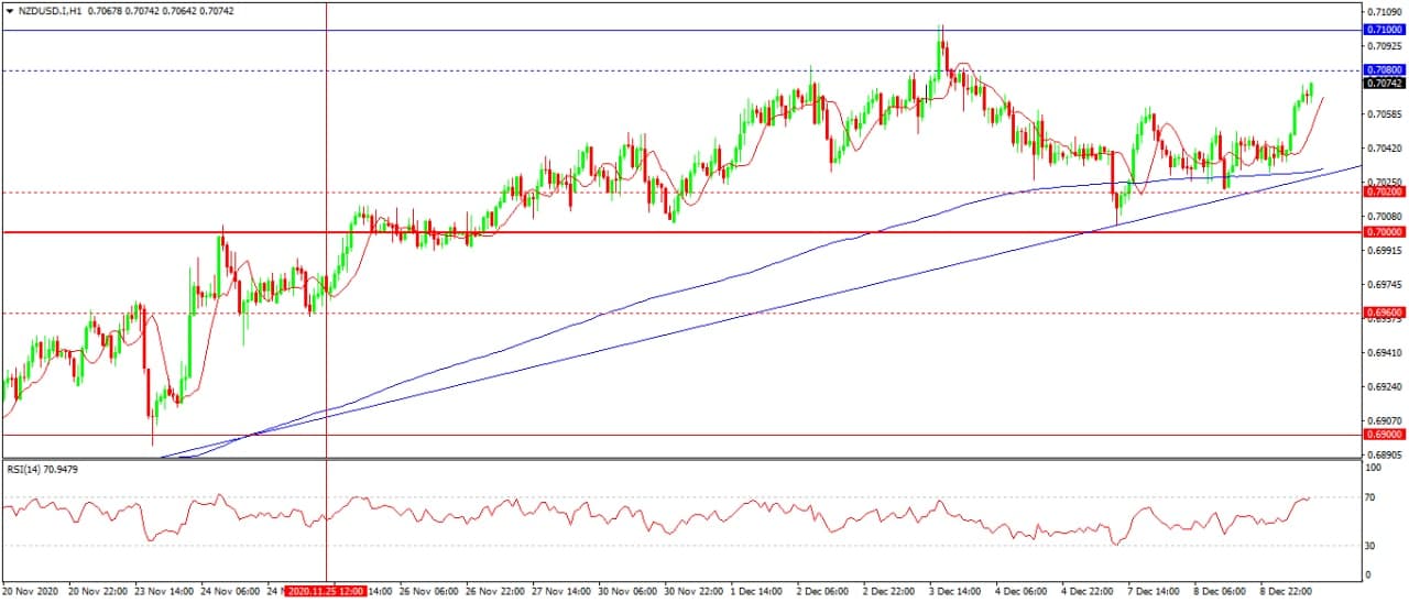 از دفعه گذشته به تاریخ 25 نوامبر که در مورد این جفت ارزی نوشته بودیم، نرخ گذاری ها به سطح هیجانی 0.7000 فشرده شده بودند و این امر افزایش مابعد تا سطوح هدفی 0.7080-0.7100 را به دنبال داشت. کانال افقی 0.7100-0.7000 در راس بازار هنوز شکسته نشده و تا قبل از خروج قیمت از این بازه، با ابهام شرایط در بازار رو به رو خواهیم بود.