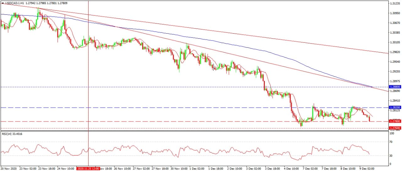 از دفعه گذشته که در مورد این جفت ارزی نوشته بودیم، نرخ گذاری ها مینیموم را شکسته بودند، قیت نفت در حال افزایش بود و دلار ایالات متحده به تضعیف نرخی ادامه می داد. این سناریو ادامه یافت و نرخ گذاری های این جفت ارزی را تا مرز 1.2760 سوق داد. کانال افقی 1.2760-1.2820 در نهاد بازار هنوز شکسته نشده و تا قبل از شکست آن با ابهام در بازار رو به رو خواهیم بود.