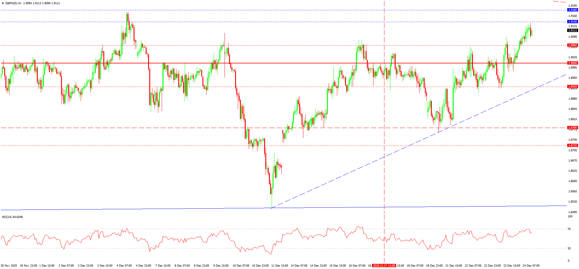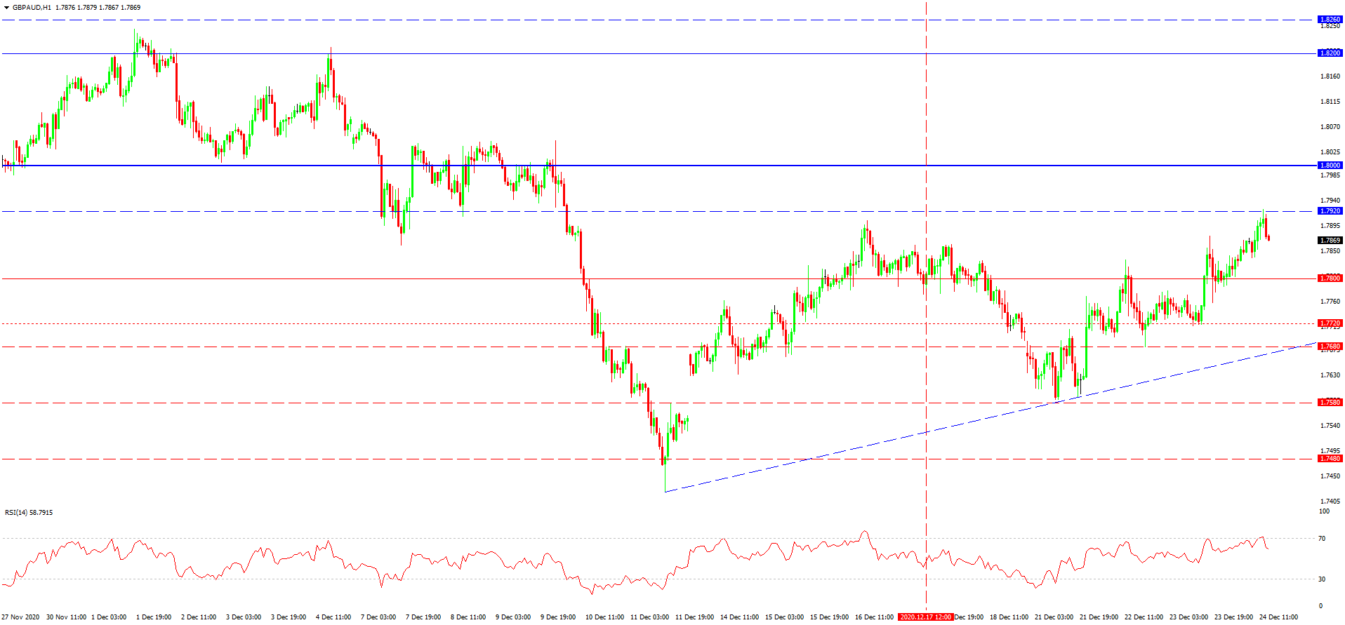 از دفعه گذشت و به تاریخ 17 دسامبر که در مورد این جفت ارزی نوشته بودیم، نرخ پوند نرسیده به سطح هیجانی 1.8000 تضعیف شده بود و از مقاومت 1.7920 انعکاس پیدا کرده بود. کاهش نرخ گذاری های این جفت ارزی تا مرز 1.7580 ادامه پیدا کرد. اخیرا قیمت پوند دوباره به مقاومت 1.7920 نزدیک شده و با در نظر گیری پیش زمینه خبری مثبت برکسیت، شاید این روند صعودی به شکست ماکسیموم و افزایش مابعد تا مرز 1.8000 و حتی 1.8080 هم بی انجامد. عدم افزایش بیشتر قیمت نفت با از سر گیری روند نزولی دلار استرالیا همراه خواهد شد (در صورتی که دلار ایالات متحده روند صعودی را آغاز کند و شیوع ویروس بحرانی شود). چنین سناریویی می تواند به رشد نرخی این جفت ارزی تا مرز 1.8200 و حتی 1.8260 نیز دامن زند.