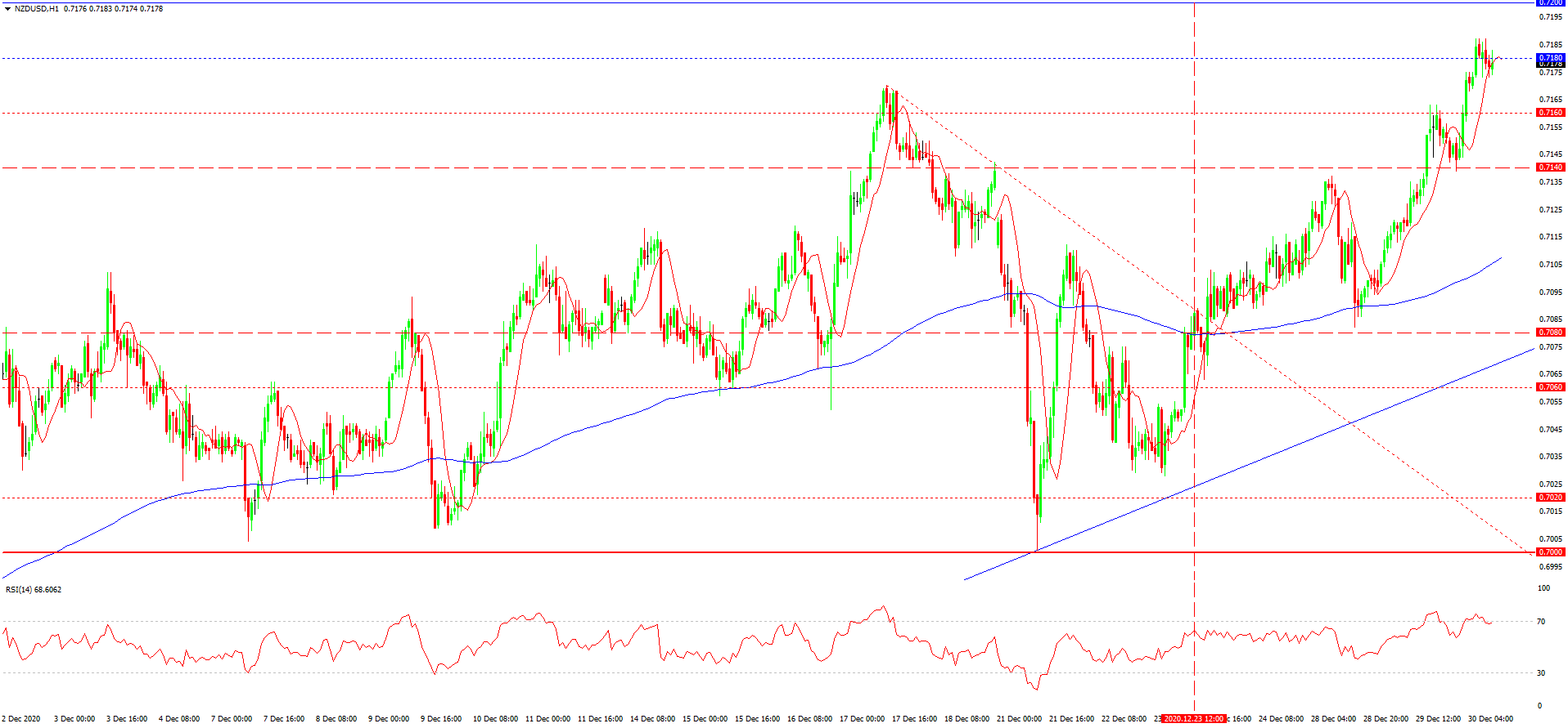 از دفعه گذشته به تاریخ 23 دسامبر که در مورد این جفت ارزی نوشته بودیم، نرخ گذاری ها از مینیموم موضعی و سطح هیجانی 0.7000 انعکاس پیدا کرده بوند و باید به افزایش در میان مدت ادامه می دادند. افزایش ادامه یافت. ماکسیموم 0.7180 هم اخیرا شکسته شد و احتمال دارد تا در آینده دور نرخ گذاری ها افزایش بیشتری نیز پیدا کنند. البته فعلا تا دوره بعدی محرک مالی ایالات متحده کمی مانده و احتمال دارد در راس بازار، نرخ دلار استرالیا کاهش اصلاحی نماید. پتانسیل این کاهش شامل بازه 0.7160-0.7140 می شود. در صورتی که برخورد با این بازه با فشردگی نوسانی و ادامه یابی کاهش همراه گردد، می توان با افت بیشتر این جفت ارزی تا مرز 0.7100-0.7080 نیز رو به رو شد. افزایش شدید دلار ایالات متحده می تواند چنین سناریویی را به بار آورد. اما فعلا دلار ایالات متحده نزدیک نهاد بازار است و به نظر می رسد، می خواهد آن را بشکافد. به همین دلیل منتظر افزایش ضربانی این جفت ارزی در آینده نزدیک باید بود. هر چه زودتر پیش زمینه خبری سهام و اقتصاد آمریکا بدتر شود، زودتر با از سر گیری کاهش بیشتر این جفت ارزی بر اثر افزایش بحرانی دلار آمریکا نیز رو به رو خواهیم شد.