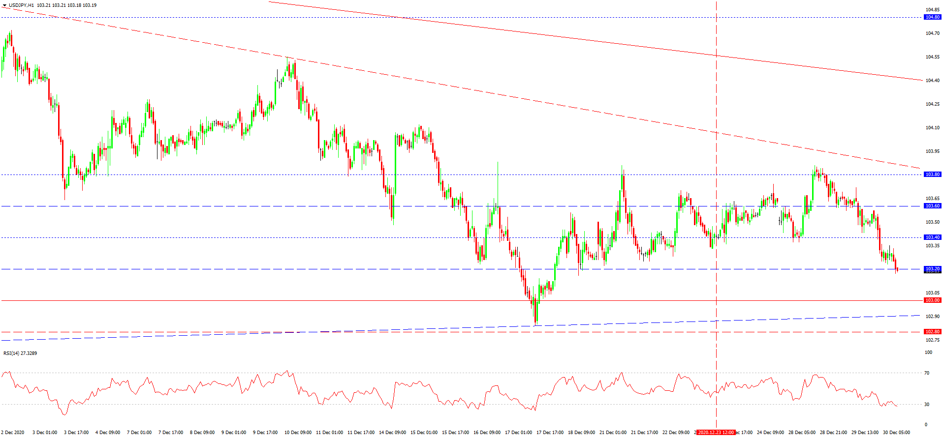 از دفعه گذشته که در مورد این جفت ارزی نوشته بودیم نرخ گذاری ها به روند صعودی در بطن کانال ادامه می دادند. این افزایش تا زمان رسیدن به ماکسیموم 103.80 ادامه داشت. برخورد با این ماکسیموم از سر گیری روند نزولی و کاهش قیمت دلار تا مرز 103.20 را به همراه داشت. در حال حاضر قیمت دلار به دلیل تصویب لایحه محرک مالی تضعیف شده و این جفت ارزی را راهی مینیموم 103.00-102.80 می نماید. تا قبل از شکست این مینیموم شاید با از سر گیری افزایش این جفت ارزی رو به رو شویم. در صورت شکست این بازه و عدم از سر گیری افزایش قیمت دلار ایالات متحده همراه با بازگشایی جلسات معاملاتی امروز آمریکا، می توان با شکسته شدن این بازه و ادامه یابی روند نزولی تا سطوح جدید نیز رو به رو شد. تنها راه جلوگیری از این سناریو ادامه یابی ریزش سهام ایالات متحده همراه با شروع جلسات معاملاتی امروز آمریکا به حساب می آید.