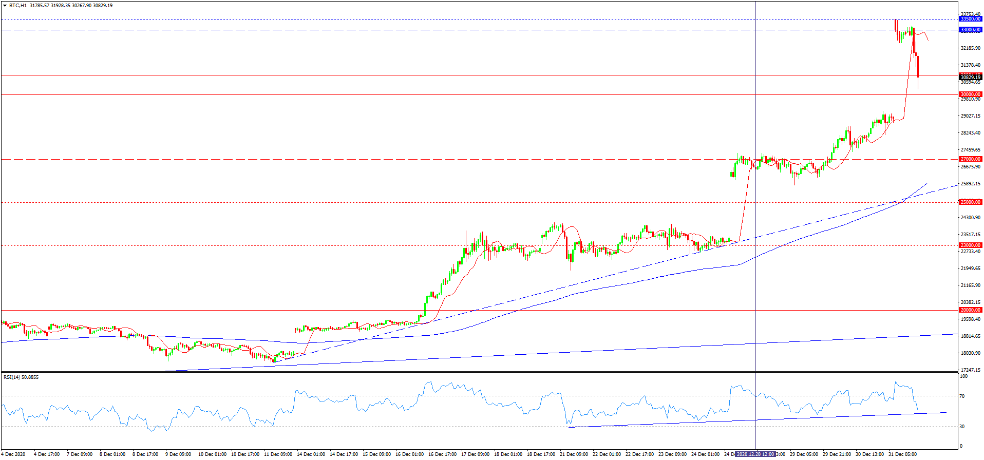 از دفعه گذشته به تاریخ 28 دسامبر سال گذشته که در مورد این رمزارز نوشته بودیم نرخ گذاری ها به افزایش بر فراز خط روند صعودی ادامه می دادند. خوش بینی منعکس شده بسیاری از تحلیلگران از طریق شبکات اجتماعی ما نیز طبق این ترند با ادامه یابی افزایش آتی قیمت تا 30000 درست از آب درآمد. این افزایش در طی تعطیلات گذشته رخ داد و نرخ بیت کوین را تا مرز 33500 دلار افزایش داد. افت فعلی قیمت اصلاحی تلقی می شود. برای خریداران خرد بهتر است تا اتمام این اصلاحی نرخی صبر کنند. در ضمن در صورت فشردگی نوسانی در محدوده خط روند صعودی نیز باید معاملات خرید را به بعد موکول نمود. شکست این خط و بازه نرخی 27000-25000 به شکلی ضربانی و سریع (در صورتی که بعد از آن با فشردگی نوسانات برخورد نکنیم) می تواند مبنی بر از سر گیری روند صعودی باشد که در آینده احتمالا چندین بار ماکسیموم های 30000 و 33000 را تست خواهد کرد.