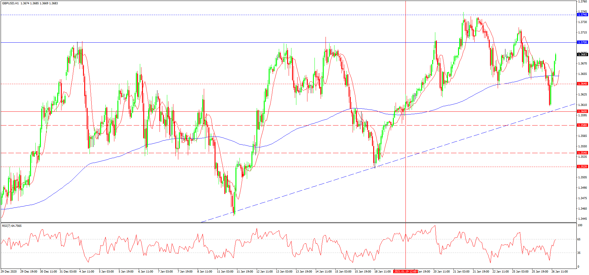از دفعه گذشته به تاریخ ۱۹ ژانویه که در مورد این جفت ارزی نوشته بودیم، نرخ گذاریها خط روند صعودی را تست نموده بودند و بعد از تست پشتیبانی ۱٫۳۵۴ به افزایش بیشتر تا مرز ماکسیموم ۱٫۳۷ و حتی ۱٫۳۷۴ نیز ادامه دادند. پوند نسبت به یورو قویتر بوده و به همین دلیل تا قبل از شکست مینیموم موضعی ۱٫۳۶۴ معاملات فروش این جفت ارزی را به بعد موکول میکنیم. حتی با وجود قرار داشتن قیمت در رأس بازار. سطح ۱٫۳۶ پشتیبانی نهایی و پتانسیل افت اصلاحی پوند میباشد، که حتی در صورت افت قیمت تا این مرز هم میتوان در این محدوده معاملات خرید پوند را دوباره از سر گرفت. تنها درصورتیکه کاهش یابی ماکسیموم ها ادامه یابد و قیمت در زیر ۱٫۳۴۶ دچار فشردگی نوسانی شود میتوان با ادامه یابی افتی بسیار کند روبهرو شد.