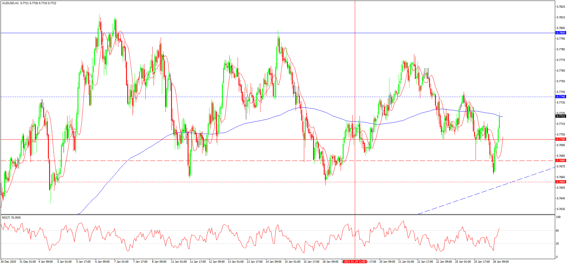 از دفعه گذشته به تاریخ ۱۹ ژانویه که در مورد این جفت ارزی نوشته بودیم، نرخگذاریها از مینیموم موضعی و چندماهه ۰٫۷۶۶ انعکاس پیدا کرده بود و احتمال میرفت تا با ازسرگیری افزایش روبهرو شویم. افزایش قیمت تا نزدیکی ماکسیموم موضعی ۰٫۷۸ و دقیقتر تا مرز ۰٫۷۷۸ ادامه پیدا کرد. اخیراً با برخورد دوباره قیمت با این مینیموم و ازسرگیری دوباره افزایش رو به رو شدیم که نشاندهنده قدرت دلار استرالیا و این پشتیبانی میباشد. شکست آتی مقاومت ۰٫۷۷۴ میتواند نرخ گذاریها را تا مرز ۰٫۷۷۸ نیز سوق دهد. بعد از تست شدن این بازه، شاید با افت اصلاحی روبهرو شویم.