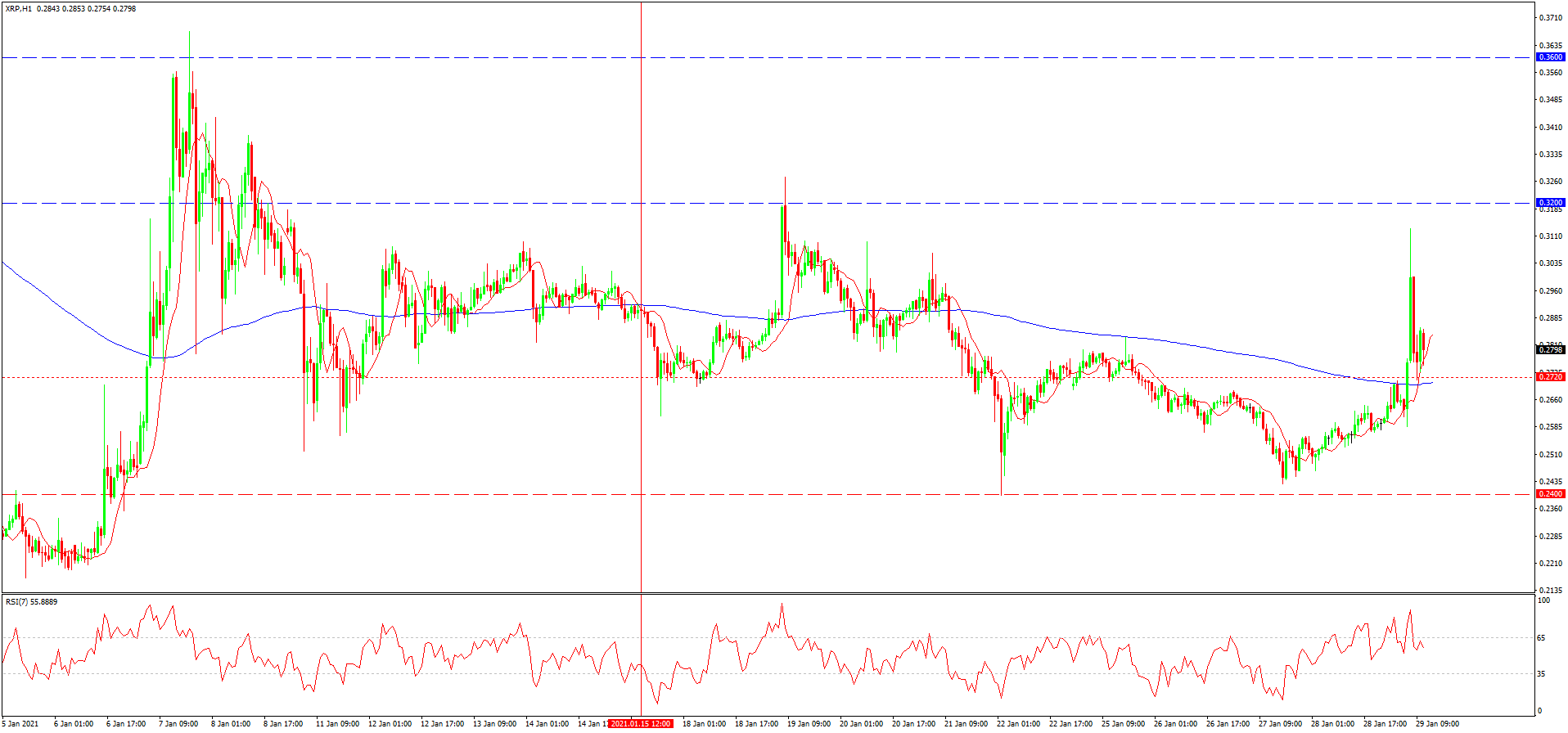 از دفعه گذشته به تاریخ 15 ژانویه که درمورد این رمزارز نوشته بودیم، نرخ گذاری ها دچار فشردگی شدیدی شده بودند. قیمت دیرتر تا پشتیبانی 0.2720 و 0.2400 نیز سقوط نمود. خیرا نرخ گذاری ها از این مینیموم انعکاس یافته اند و در حال نزدیک شدن به ماکسیموم موضعی 0.3200 می باشند. شاید نرسیده به این ماکسیموم با افت دوباره هم برخورد کنیم. در صورتی که قیمت پایین تر از 0.2700 نرود، می توان با از سر گیری روند صعودی رو به رو شد.