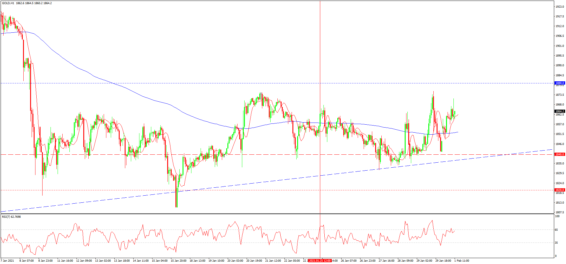 از دفعه گذشته به تاریخ 25 ژانویه که در مورد طلا نوشته بودیم، نرخ گذاری ها از خط روند صعودی انعکاس پیدا کرده بودند ولی به دلیل پیش زمینه خبری قوی و مثب واکسن، نرخ طلا مدت زیادی است که تحت فشار قرار داشته. روند نرخی در کانال 1880-1840 ادامه داشته و به نظر می رسد که در آینده نزدیک مینیموم را بشکاند. شکست مینیموم و خط روند می تواند به افت تا مرز 1820 بی انجامد. در صورتی که این افت نرسیده به خط روند متوقف شود، می توان با ادامه یابی روند صعودی اما بسیار کند تا 1880 رو به رو شد.
