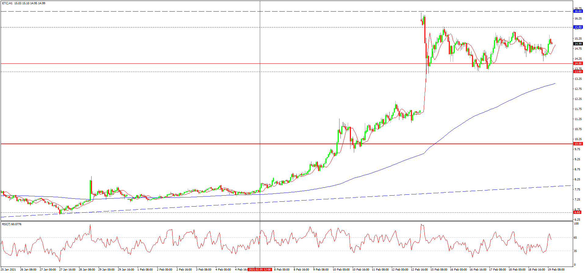 از دفعه گذشته به تاریخ 05 فوریه که در مورد این رمزارز نوشته بودیم، قیمت بر فراز خط روند در حال افزایش بود و شکست مابعد ماکسیموم 10.00، افزایش بیشتر قیمت تا مرز 16.60 را نیز به دنبال داشت. فشردگی نوسانی ایجاد شده در راس بازار نشان دهنده ابهام کوتاه مدت می باشد. پتانسیل افت اصلاحی نیز شامل سطوح 14.00-12.80 می باشد. در صورت کاهش قیمت پایین تر از این سطوح با نوسان سازی پایین و بدون ضربان، خطر ادامه یابی کاهش تا سطح هیجانی 10 نیز افزایش خواهد یافت. تا قبل از شکست 12.00 می توان به خرید این آلتکوین ادامه داد.