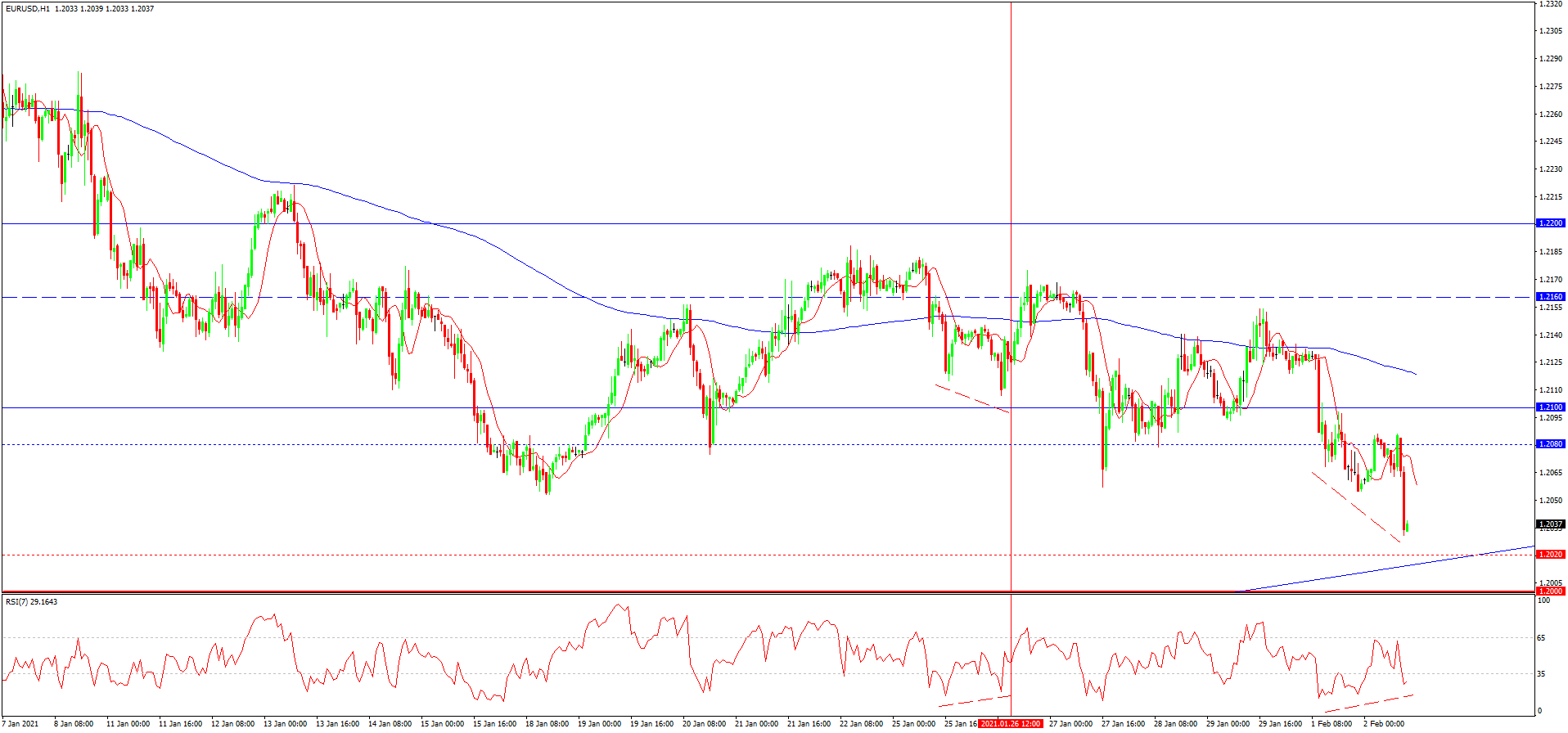 از دفعه گذشته به تاریخ 26 ژانویه که در رابطه با این جفت ارزی نوشته بودیم، نرخ گذاری ها بعد از ایجاد هم گرایی کوتاه بین روند روزانه و خط نوسانگر که منجر با انعکاس و افزایش اصلاحی کوتاه مدت شد، نرسیده به ماکسیموم موضعی 1.2180 با از سر گیری روند نزولی، شکست مینیموم و ادامه یابی کاهش قیمت تا مرز 1.2020 رو به رو شدیم. نرخ یورو در حال حاضر به پشتیبانی بالقوه هیجانی 1.2000 و خط روند صعودی بلند مدت نزدیک شده و احتمال دارد به زودی با انعکاس دوباره روند رو به رو شویم. هم گرایی ایجاد شده بین روند روزانه و خط نوسانگر می تواند مبنی بر احتمال توقف یابی موقت روند نزولی در آینده نزدیک و حتی از سر گیری افزایش یورو در میان مدت نیز باشد.