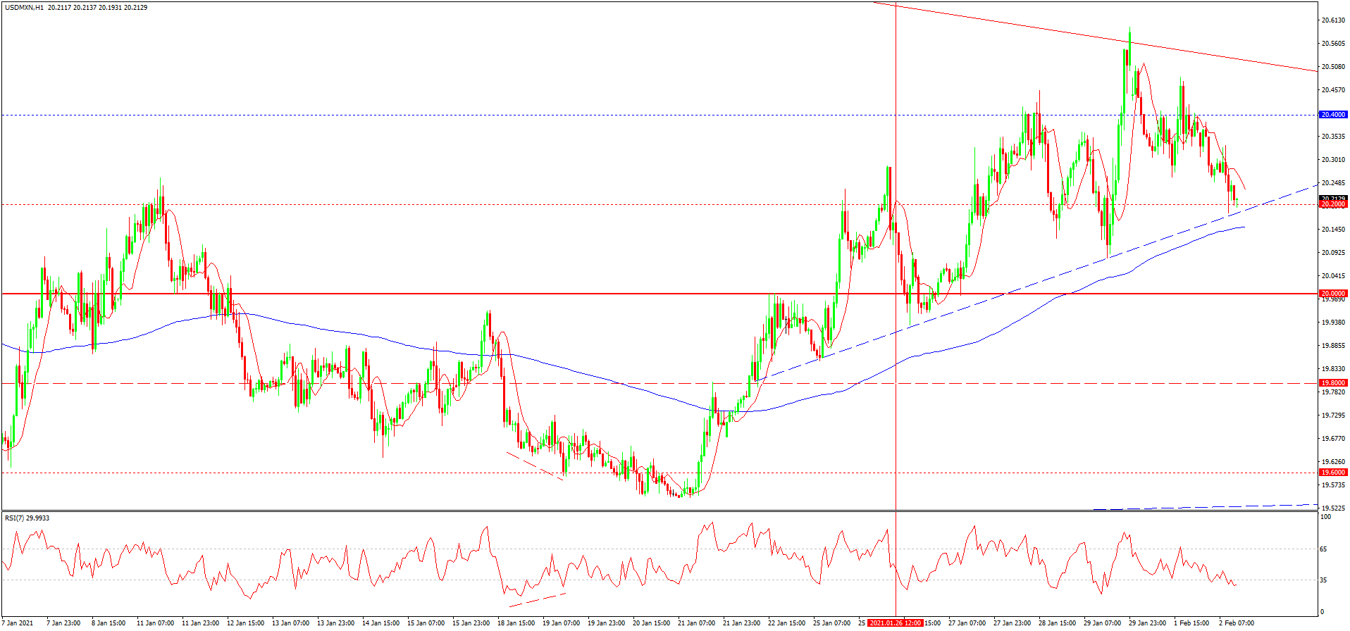 از دفعه گذشته به تاریخ 26 ژانویه که در رابطه با این جفت ارزی نوشته بودیم، نرخ گذاری ها بعد از افزایش و شکست سطح هیجانی 20.00 به افزایش بیشتر تا مرز 2.40 و حتی 20.60 نیز ادامه دادند. اخیرا قیمت این جفت ارزی به لطف افزایش قیمت نفت سقوط کرده و پتانسیل افت بیشتر به افزایش آتی قیمت نفت بستگی خواهد داشت. مسلما در صورت افزایش بیشتر قیمت نفت و از سر گیری روند نزولی شاخص دلار ایالات متحده می توان با افت دوباره تا مرز سطح هیجانی 0.20 رو به رو شد.