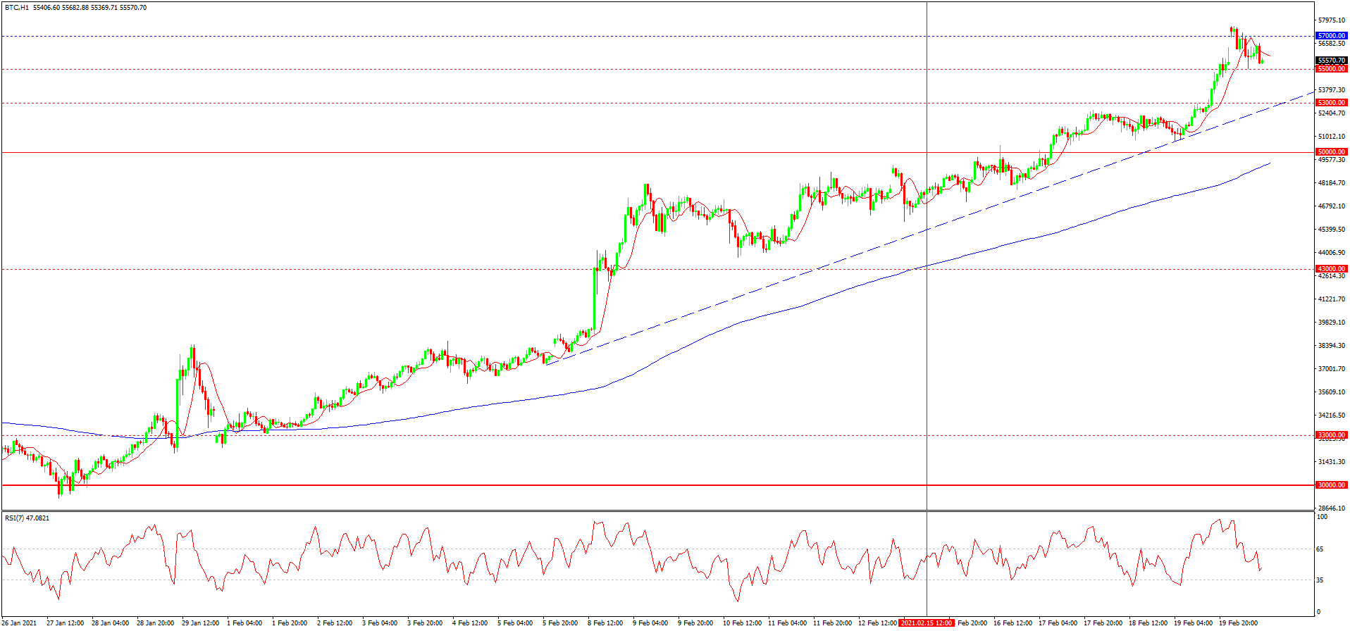 از دفعه گذشته به تاریخ 15 فوریه که در مورد این رمزارز نوشته بودیم، نرخ گذاری ها با ایجاد فشرگی نوسانی در بطن مثلثی مایل به بالا در حال افزایش بود. این فشردگی در نزدیکی سطح هیجانی 50000 دلار، باعث ضربان مابعد و افزایش قیمت تا مرز 57000 شد. نرخ گذاری ها اخیرا افتی اصلاحی را دنبال می کنند و در حال نزدیک شدن به خط روند صعودی می باشند. تست آتی این خط در محدوده 53000-50000 دلار، می تواند توقف کاهش اصلاحی و از سر گیری روند صعودی را به دنبال داشته باشد.