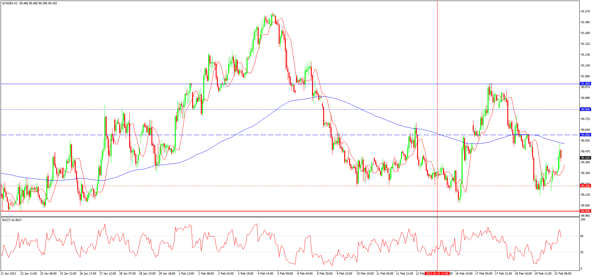 از دفعه گذشته به تاریخ 15 فوریه که در مورد قیمت دلار نوشته بودیم، نرخ گذاری ها مینیموم موضعی 90.20 را تست می کردند و افزایش به شکست مقاومت موضعی 90.60 و افزایش بیشتر تا مرز 91.00 منجر شد. اخیرا قیمت دوباره به مینیموم موضعی نزدیک شد و از آن انعکاس پیدا کرد. افزایش بیشتر دلار به ریزش بیشتر سهام ربط خواهد داشت و به دلیل نزدیک بودن قیمت شاخص S&P 500 به مینیموم های موضعی، احتمالا افزایش دلار به موازات برخورد با 90.60-90.80 می تواند اتمام یابد.
