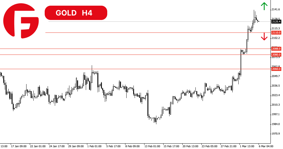 علیرغم رشد انفجاری، شکست یا تثبیت قیمتها بالاتر از سقف تاریخی اتفاق نیفتاد. این یک سیگنال بد برای خریداران است، اما آنها توانستند بالای سطح 2110 دلار باقی بمانند. شکست این سطح حمایتی به عنوان اولین سیگنال آمادگی فروشندگان برای بازگشت به محدوده 2080 - 2088 دلار است. تا آن زمان، گاوها همچنان به رشد بیشتر و در نتیجه تکرار کردن سقف تاریخی امیدوار هستند.