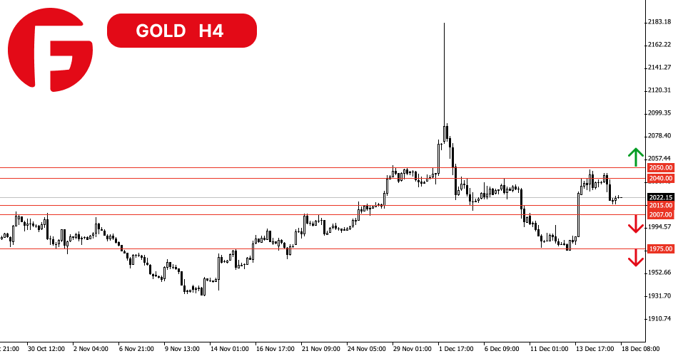 طلا در یک کانال جانبی نسبتاً پهن، بین دو محدوده قیمت قرار دارد. یعنی محدوده حمایتی 2007 - 2015 دلار و محدوده مقاومتی 2040 - 2050 دلار. قبل از شکست و تثبیت بعدی قیمتها در خارج از یکی از این محدوده ها، تعیین جهت حرکت بعدی قیمتها بسیار دشوار است.