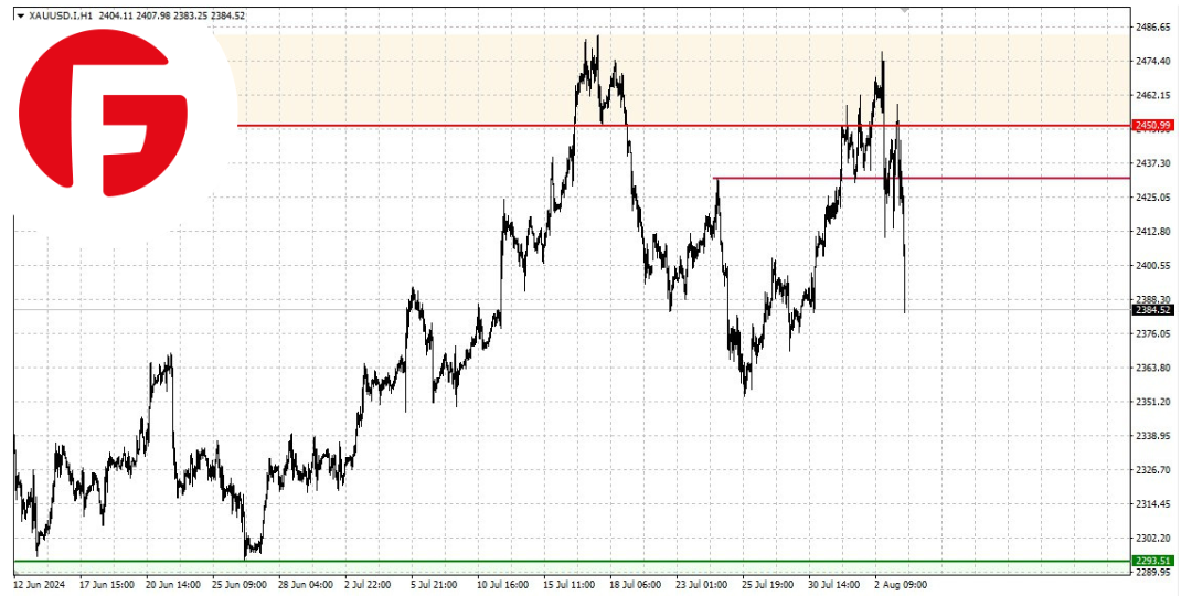 از نظر فنی، منطقه فروش بالای سطح ۲۴۵۰ دلار، که همچنان فعال بودهاست، همزمان با سقوط بازارهای جهانی، به عنوان نقطه شروع برای افت جدید در دارایی عمل کرد. هدف بعدی محلی در مسیر به سمت حد پایینتر، منطقه سطح ۲۳۵۰ دلار خواهد بود.