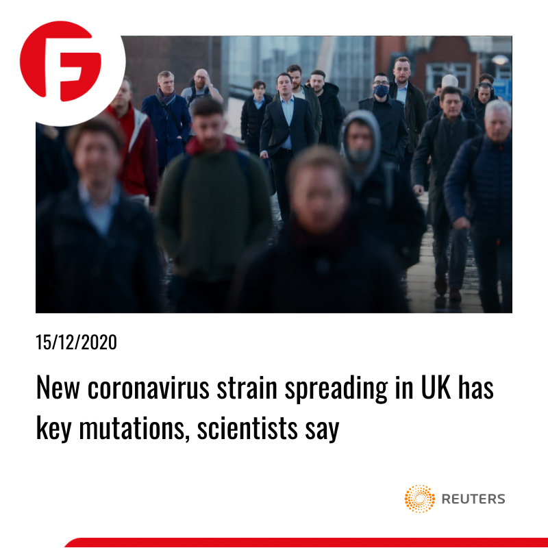 دانشمندان انگلیسی در تلاشند تا دریابند که آیا انتشار سریع ویروس COVID-19 در جنوب انگلیس با جهش های کلیدی اخیرا کشف شده ارتباط دارد یا خیر. این جهش ها شامل تغییراتی در سنبله ویروس کرونا SARS-CoV-2 بوده که در آلوده کردن سلول های انسانی نقش دارد. نوع جدید ویروس که دانشمندان انگلستان آن را "VUI - 202012/01" نامگذاری کرده اند، جهش ژنتیکی پروتئین ویروس را در بردارد و از لحاظ تئوری - می تواند منجر به گسترش سریع تر COVID-19 شود. احتمال دارد که این مساله باعث ایجاد عفونت شدیدتر COVID-19 شود و تاثیر واکسن را کم کند. جهش ها یا تغییرات ژنتیکی به طور طبیعی در همه ویروس ها از جمله SARS-CoV-2 وجود دارد. این خبر در کوتاه مدت به افزایش قیمت دارایی های حفاظتی کمک می کند. در آینده و در صورت کاهش یابی تاثیر واکسن های کشف شده به دلیل جهش های ژنتیکی، احتمال نیازمند شدن دولت ها به اختصاص بودجه های بیشتر افزایش میابد و ضعف دلار ایالات متحده را هم امکان پذیر تر می سازد.