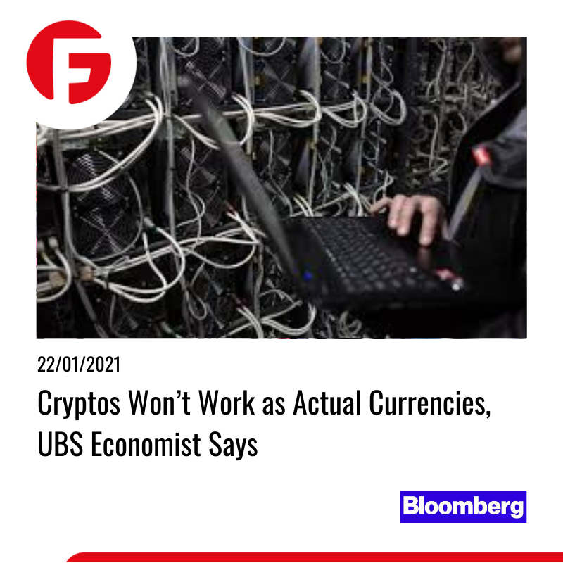 طبق گفته UBS، ارزهای رمز پایه هرگز نمیتوانند بهعنوان ارزهای واقعی کار کنند. پل دونووان، اقتصاددان ارشد UBS Global Wealth Management، این هفته در ویدئویی گفت: "نقص اساسی" موجود در ارزهای رمز پایه این است که وقتی تقاضا کاهش مییابد، نمیتوان عرضه را کاهش داد. وی گفت که این بدان معناست که ارزهای دیجیتالی بدون رگلاتوری نمیتوانند ارز محسوب شوند. به گفته دونووان، "ارز مناسب" باید یک ارز ذخیره باارزش پایدار باشد و این اطمینان را حاصل کند که قادر خواهد بود همان سبد کالایی را که امروز پیشنهاد میکند را، در آینده نیز پشتیبانی کند. همان اطمینانی را که بانکهای مرکزی در صورت کاهش عرضه و افزایش تقاضا میتوانند ایراد کنند. چنین مکانیزمی برای کاهش عرضه ارزهای رمز پایه وجود ندارد. ایشان اضافه نمود: بعید است مردم بخواهند از ارزی استفاده کنند که اطمینان خرید آن را در آینده نداشته باشند.