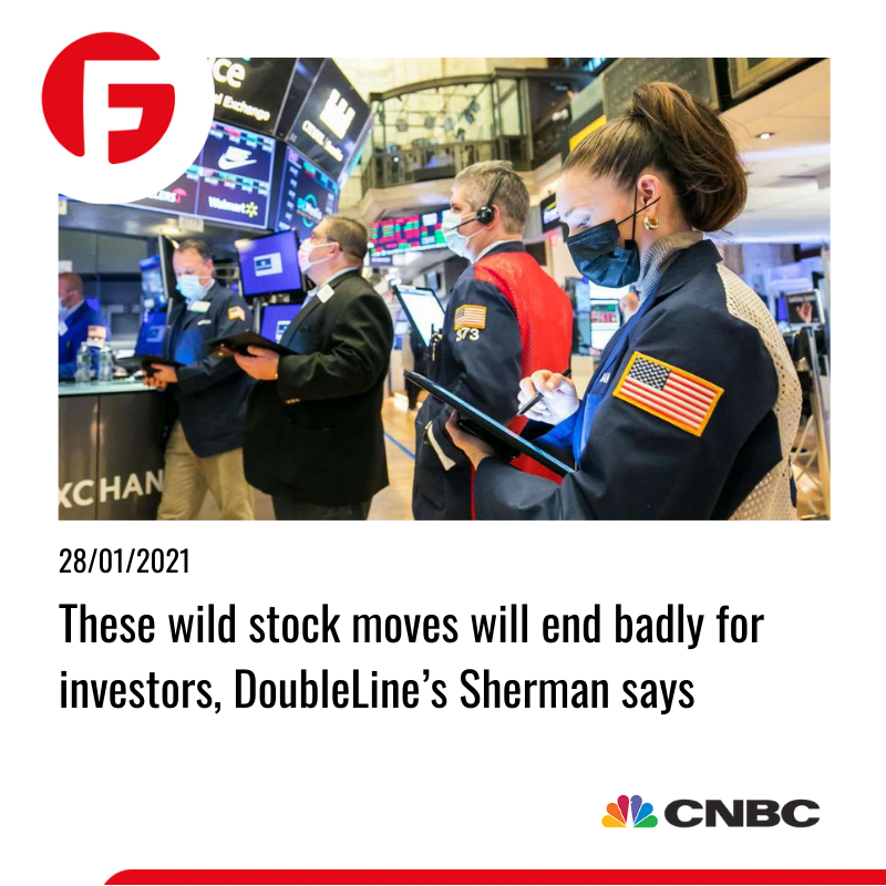 جفری شرمن، معاون ارشد DoubleLine Capital در مورد سقوط قریبالوقوع سهام شک داشته، اما احتمال نزدیک بودن خطر را میدهد. او با در نظرگیری افزایش شدید و اخیر سهام شرکتهای کامپیوتری AMC و GameStop افزود: بحران حبابهای dotcom در ابتدای قرن ۲۱ را به یاد آورید. من فکر نمیکنم افزایش کنونی پایان خوبی داشته باشد. کمیسیون بورس و اوراق بهادار با صدور بیانیهای اعلام کرد که کنترل نوسانات بازار سهام را در دست دارد. شرمن هشدار دارد تا سرمایهگذاران سهام در این وهله نامعلوم از بیپروایی خودداری کنند. شرکتهای Apple، Facebook و Tesla دیشب با انتشار آمار منفی درآمد ۳ ماهه، سقوط شدیدی در شاخصهای اصلی سهام ایالاتمتحده ایجاد نمودند. دراینبین فیسبوک در مورد "افزایش سطح عدم اطمینان کاربران" در سال ۲۰۲۱ هشدار داد و گفت که اقتصاد شرکتهای تکنولوژی برتر در حال حاضر درخطر میباشد.